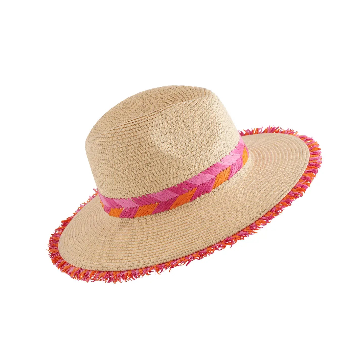 Say Hello To The Peyton Hat, Your New Seaside Essential! Featuring A Natural Woven Design Accented With Vibrant Pink and Orange Braided Detailing and A Playful Fringe Brim, This Sunhat Is The Perfect Mix Of Chic and Fun. Whether You'Re Lounging By The Water Or Strolling Through A Summer Market, The Peyton Hat Keeps You Shaded and Stylish. Lightweight and Easy To Wear, It'S The Ultimate Accessory For Making Sunny Days Even Brighter.