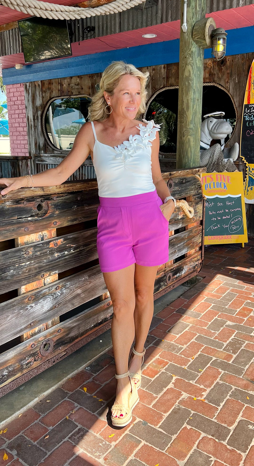 Add a pop of color to your work wardrobe with our Vanessa Fitted Shorts. These shorts are sure to bring some fun and brightness to your day. Perfect for the office or a casual day out (because who said work wear couldn't be fun too?!) Available now!