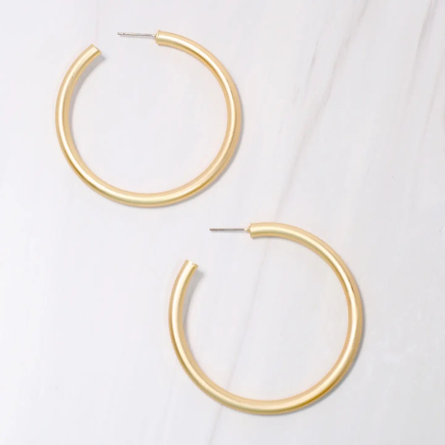 This earring is our number one selling hoop style! It is the perfect size and thickness on a post back. Dimensions: 2" diameter