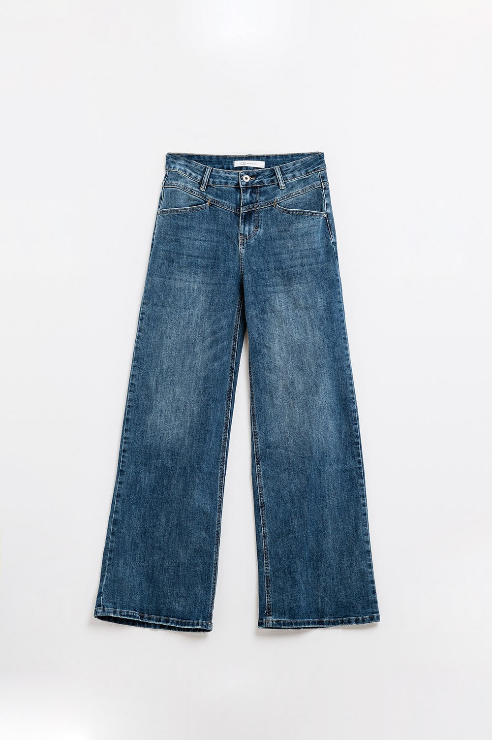 Blue flare jeans with seam detail. Wear it with a shirt and heels for an elegant look.