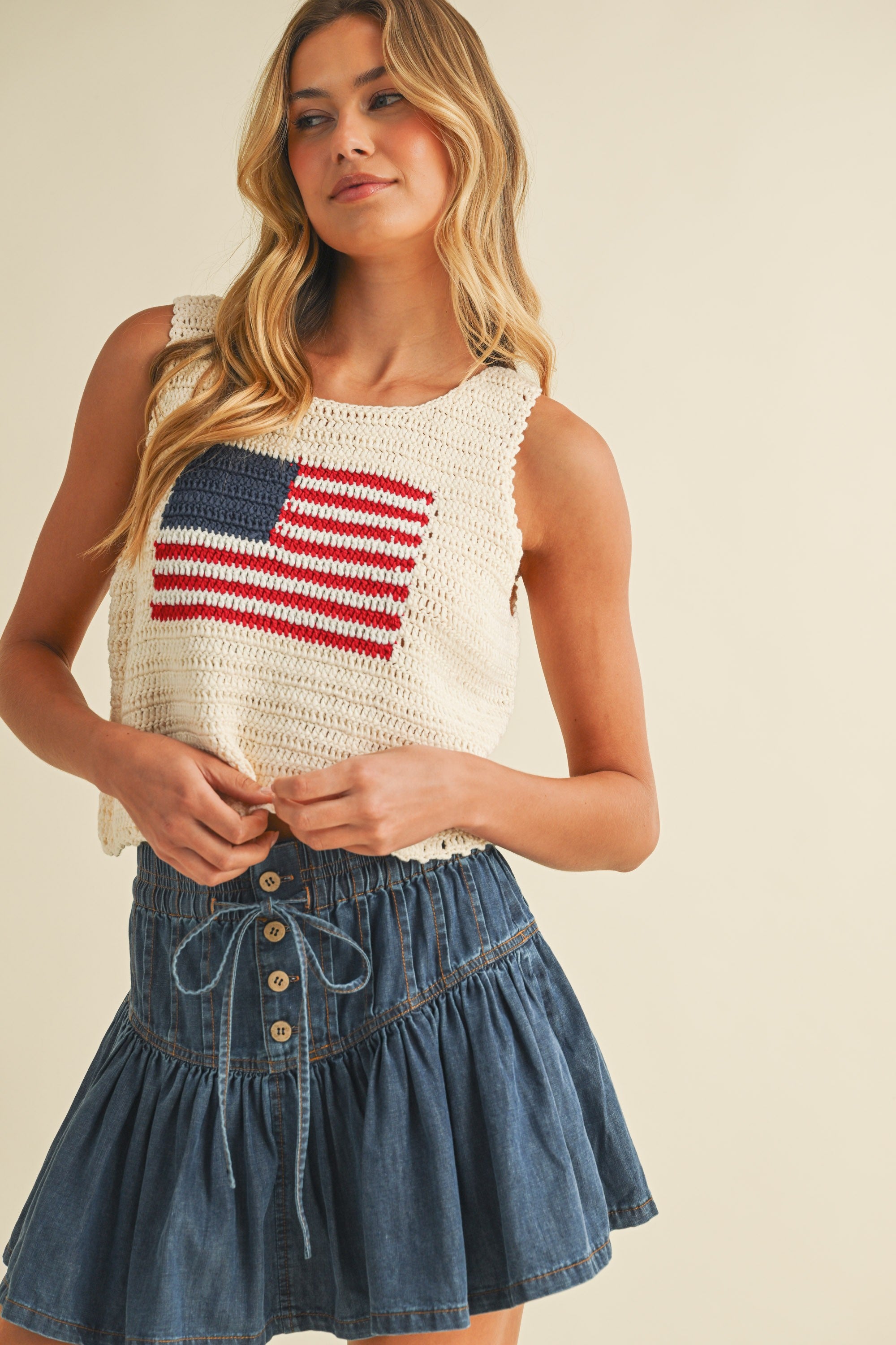 Show off your patriotic spirit with this playful USA Flag Knitted Cropped Tank. Crafted with soft, breathable knit fabric, it offers a comfy fit perfect for sunny days and summer fun. The vibrant flag design adds a bold, festive touch to your casual wardrobe, making it ideal for celebrations or everyday wear. Pair it with your favorite shorts or jeans for an effortlessly cool look.