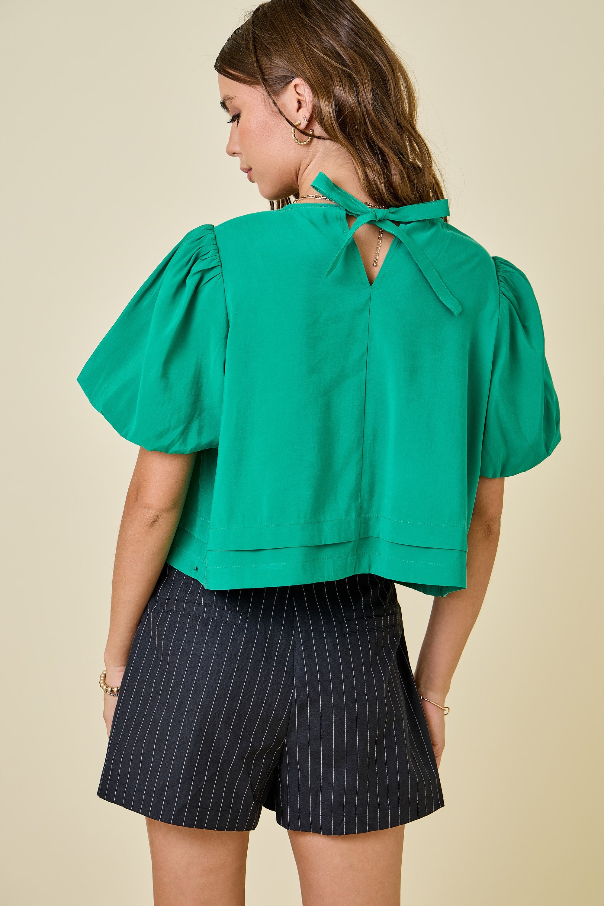 Effortlessly chic and endlessly versatile, this bubble sleeve blouse is your new go-to for any occasion. Dress it up with tailored trousers and heels for the office, or pair it with your favorite jeans for a laid-back weekend vibe. The playful bubble sleeves add just the right amount of personality without stealing the show. Whether you're heading to brunch or a night out, this blouse transitions seamlessly from day to night. A wardrobe essential that works as hard as you do.