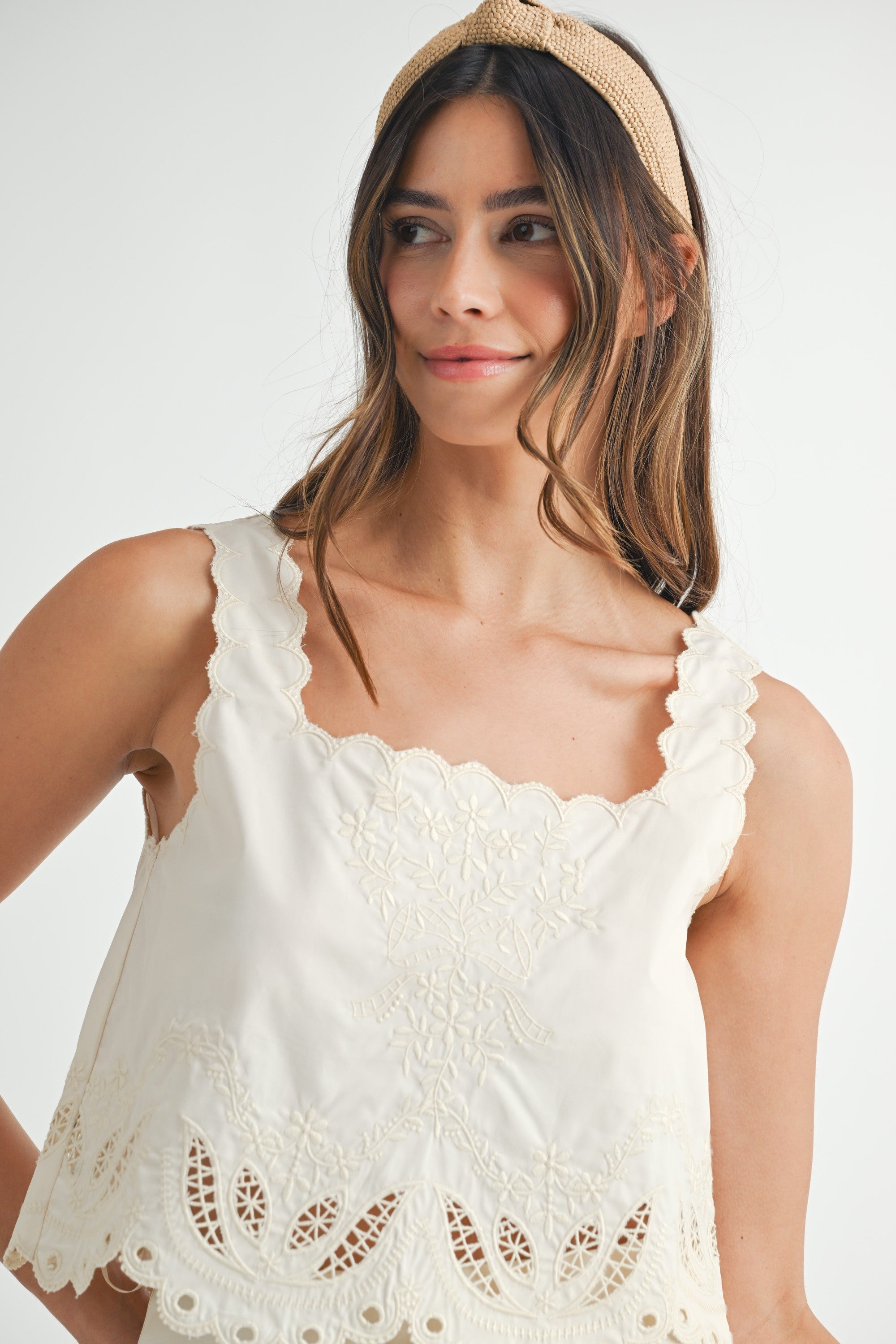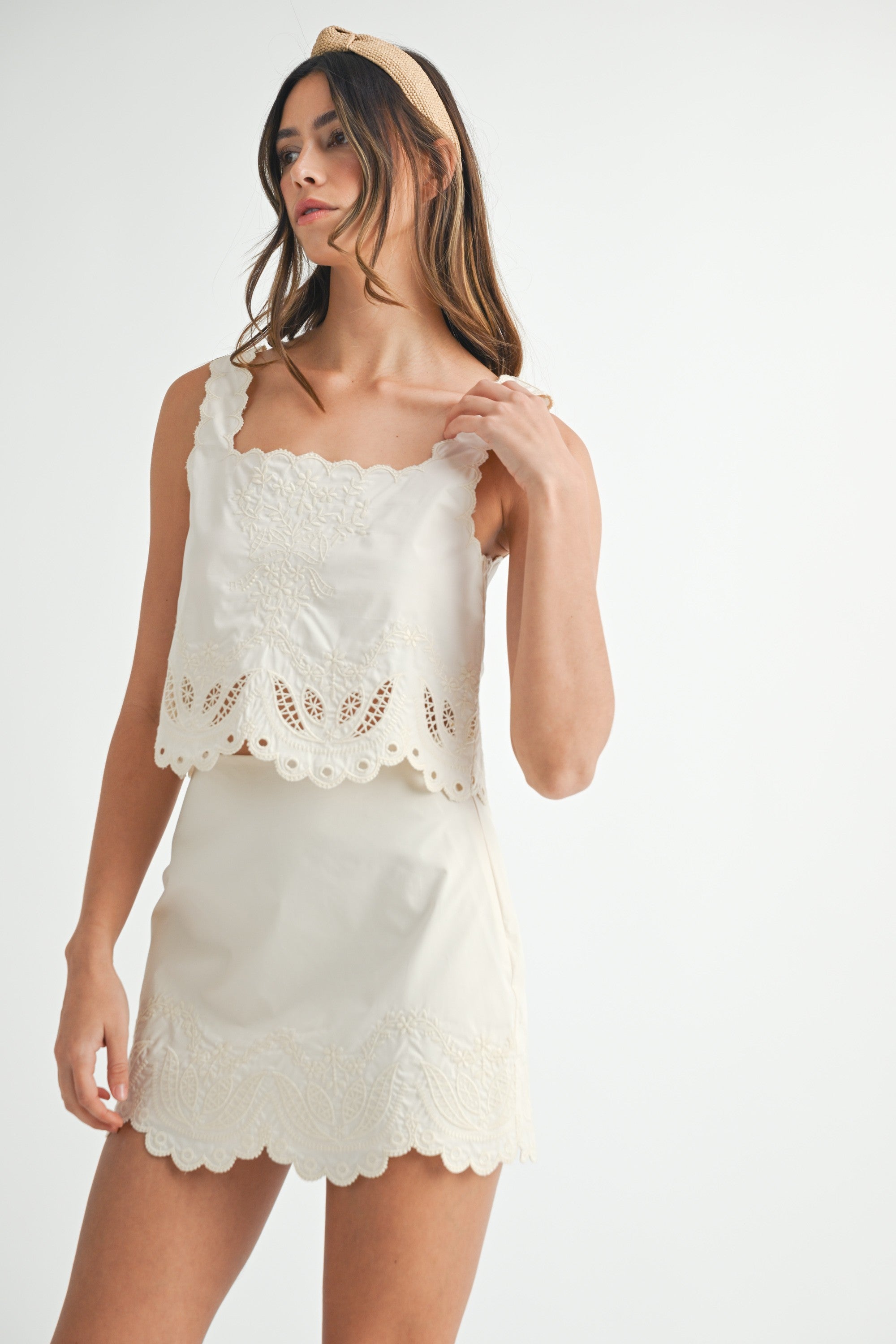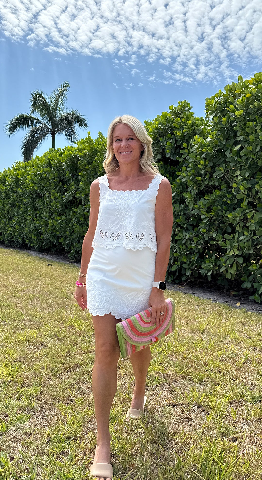 Get ready for some serious fun with the Gia White Set. This eye-catching duo features an eyelet detail that adds a playful touch, while the scalloped edge adds a unique and stylish touch. Perfect for any occasion, this set will make a statement and put a smile on your face!