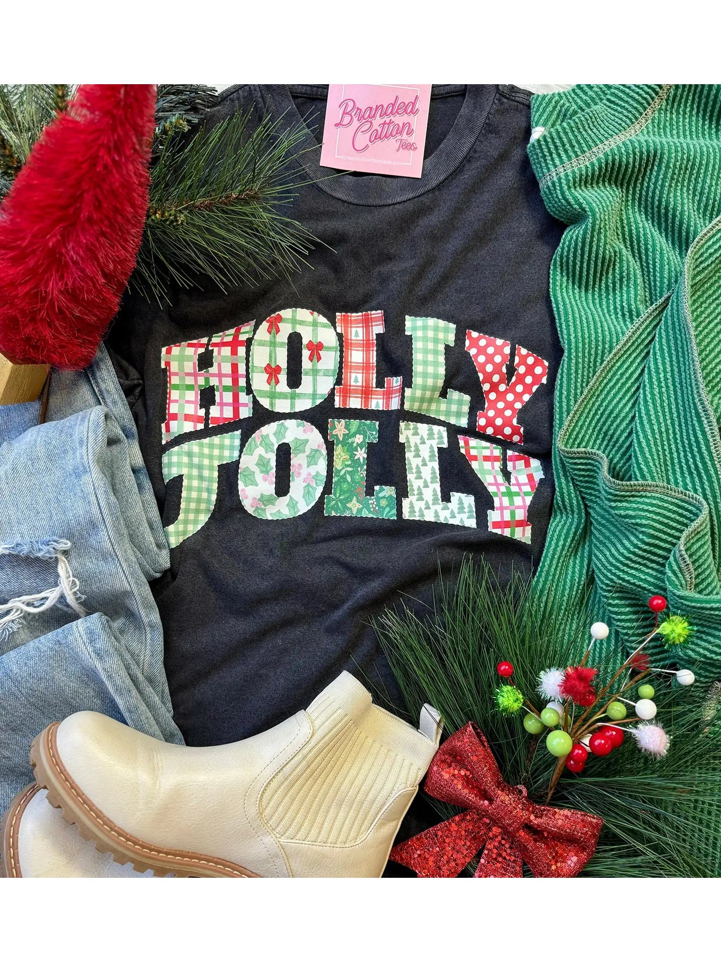 Spread holiday cheer with the Holly Jolly Patchwork top! This festive piece features a charming mix of patterns and colors that capture the spirit of the season. The playful patchwork design brings personality to your wardrobe, making it perfect for everything from casual gatherings to holiday parties. Pairs perfectly with your favorite skirt for an effortlessly stylish look that celebrates the joy of the season.