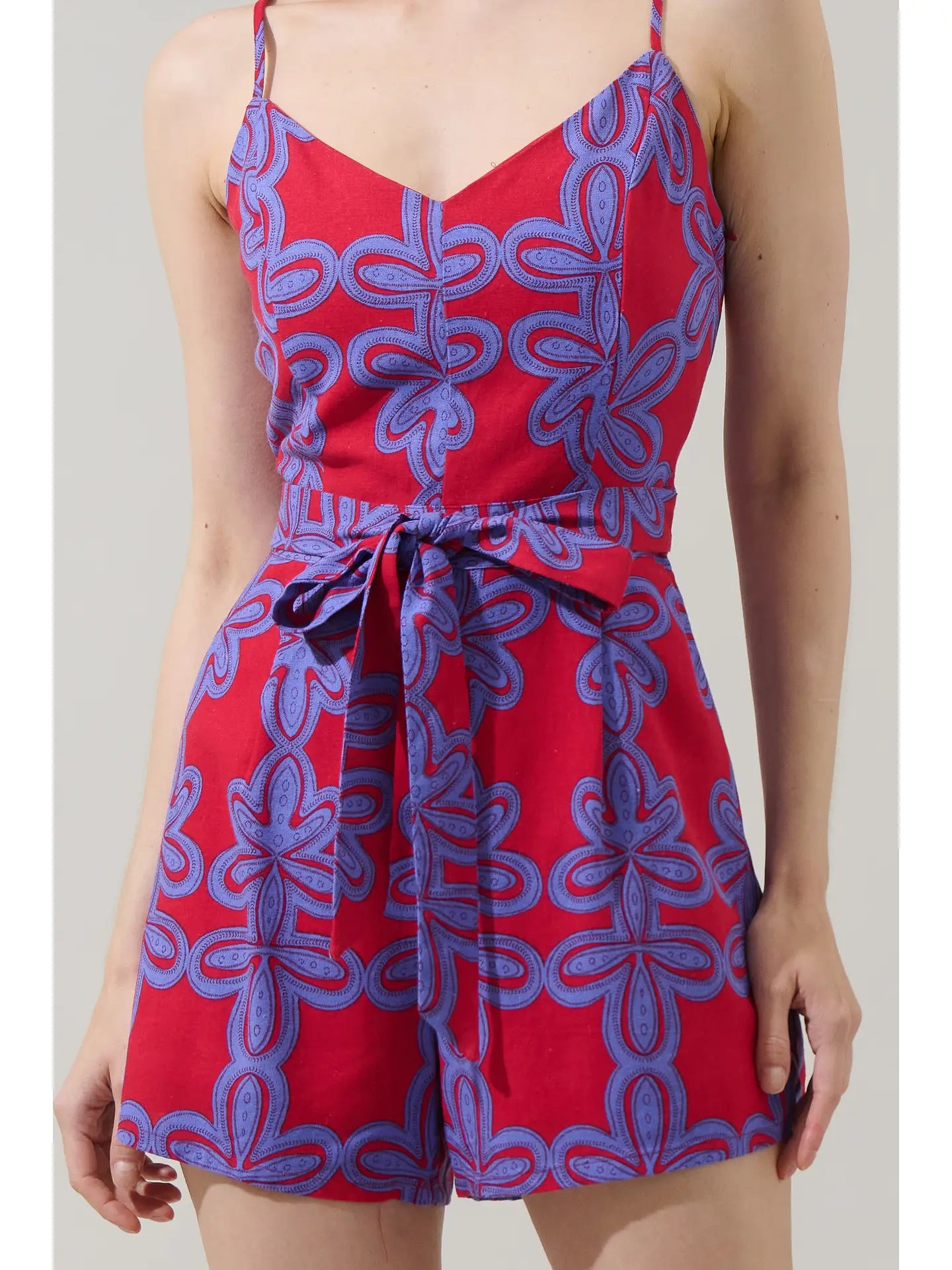 Bloom in style with this playful romper! Featuring spaghetti straps, a tie detail at the waist, and a fitted silhouette, it's the perfect romper for your summer getaway. Pair it with sandals and a wide-brimmed hat for a sun-kissed look, or dress it up with wedges and layered necklaces for a night out.