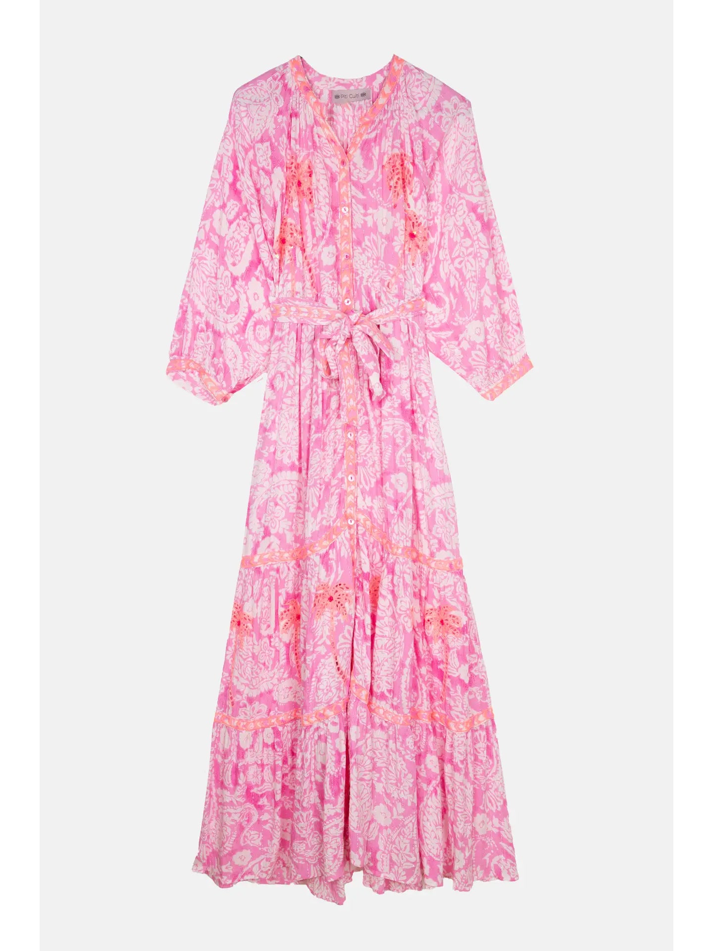 The “Sahara Rosa” long dress offers a vibrant shade of pink and an elegant design. Ideal for formal events or summer dinners.