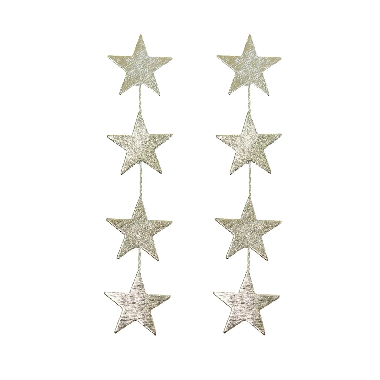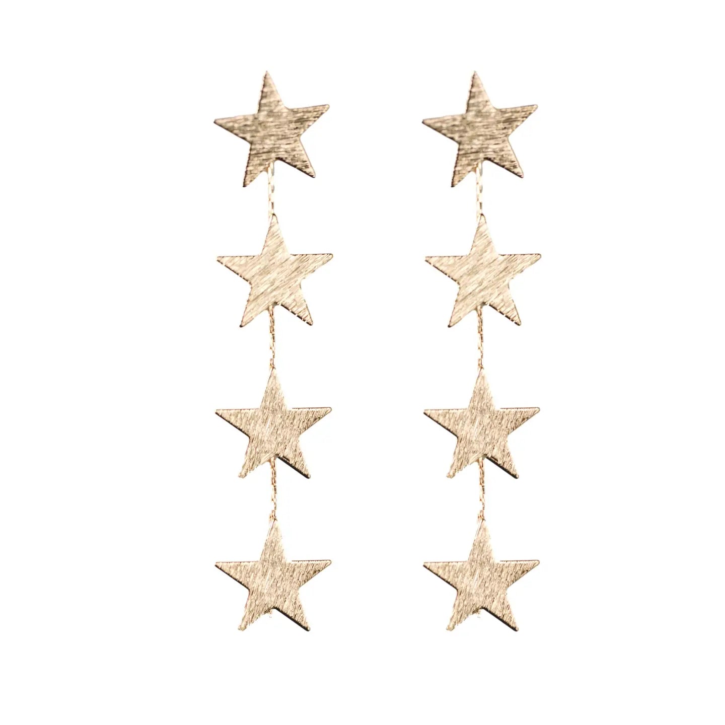 Shine bright this 4th of July with our stunning Star Statement Earrings, featuring four interlinked stars that radiate patriotic charm. These dazzling earrings are the ideal accessory to complement your red, white, and blue outfits, adding a touch of sparkle to your festive celebrations. At 3.5 inches long, they are essentially weightless, ensuring comfort while making a bold statement.